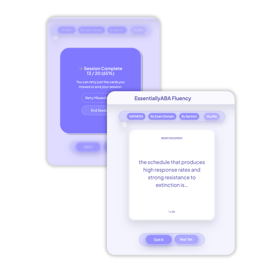Studying ABA doesn't have to be dense or overwhelming. A structured system that takes you from first learning a concept to recalling it automatically under exam pressure, all in one place.